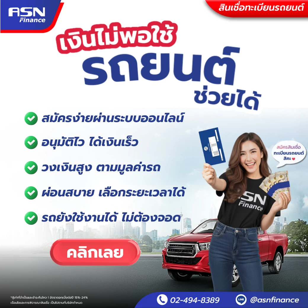เงินไม่พอใช้ รถยนต์ช่วยคุณได้! สมัครสินเชื่อทะเบียนรถยนต์กับ ASN Finance